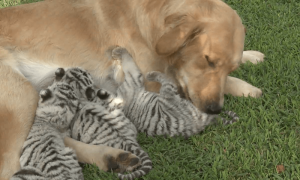 Golden Retriever Adopts 3 Rare Bengal Tiger Cubs After Their Mother Abandons Them, Giving Them a Second Chance at Love and Life